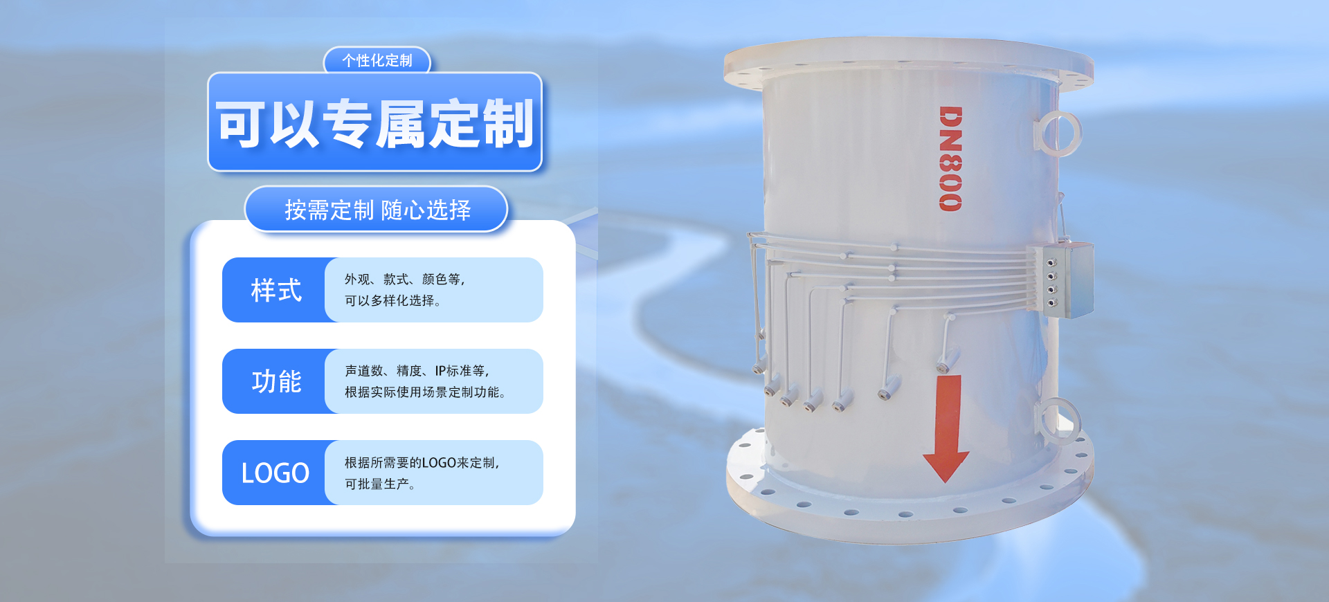 主营超声波流量计、手持式超声波流量计、插入式超声波流量计、超声波水表、超声波热量表等产品,超声波热量表厂家提供漏水检测服务,并可以根据客户需求定制流量监控系统及管道漏水监测系统。广泛应用于石油、化工、冶金、水利、供暖、医药、造纸、食品、军工、污水处理等行业。